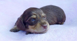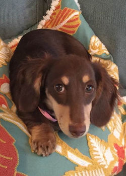 Mrs. Puppy is an Isabella dapple piebald. She was born to be a momma. Not only does she love raising her own puppies, she wants to nurse and raise everyone else's. She's gentle and loving to all puppies and will sneak in to nurse and clean up after any litter no matter who the momma is. Mrs. Puppy is very vocal and talks to you. She's quirky and odd and loves to give kisses. She's talks a lot asking to people to come see her babies. She's very proud of her litters and always wants to show them off. When she's pregnant, she collects tiny stuffed animals and you can often find 30+ hidden in her crate by the time she whelps. After she whelps, she takes a half dozen or so in the whelping box and keeps them with her puppies until they are weaned. Mrs Puppy is now retired from our program. She has been a phenomenal mom & now it's her turn to be pampered & live out her days here forever & ever.